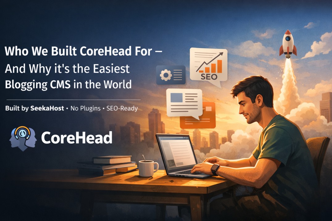 CoreHead is a modern, plugin-free blogging CMS built by SeekaHost Technologies, with built-in SEO that makes it easy for anyone to start and grow a blog without technical complexity.